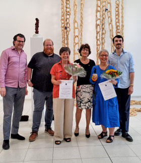 von links nach rechts: Simon Santschi, Leitung Kunsthalle Trier; Markus Nöhl, Kulturdezernent Stadt Trier; Barbara Guthy, Preisträgerin; Vera Kölbl, Präsidentin Rotary Club; Anne Arend-Schulten, Preisträgerin,;Jean-Luc Caspers, 1. Vorsitzender G.B. Kunst e.V.